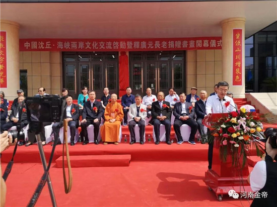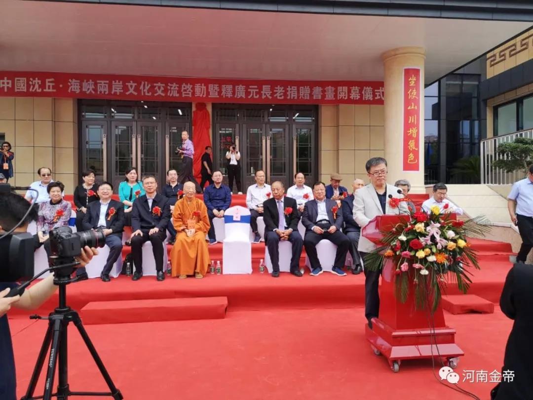 釋廣元長老在致辭中說,多年來雖身在臺灣,卻時刻心系故土,為推動兩岸同胞心靈契合、深化兩岸文化交流中貢獻(xiàn)自己的綿薄之力。希望此次無條件捐贈的藝術(shù)館古今名家書畫數(shù)百幅,能為家鄉(xiāng)文化建設(shè)貢獻(xiàn)微薄之力。同時提議將釋廣元藝術(shù)館更名為“沈丘藝術(shù)館”,為沈丘文化的發(fā)展繁榮注入新的生機(jī)和活力。