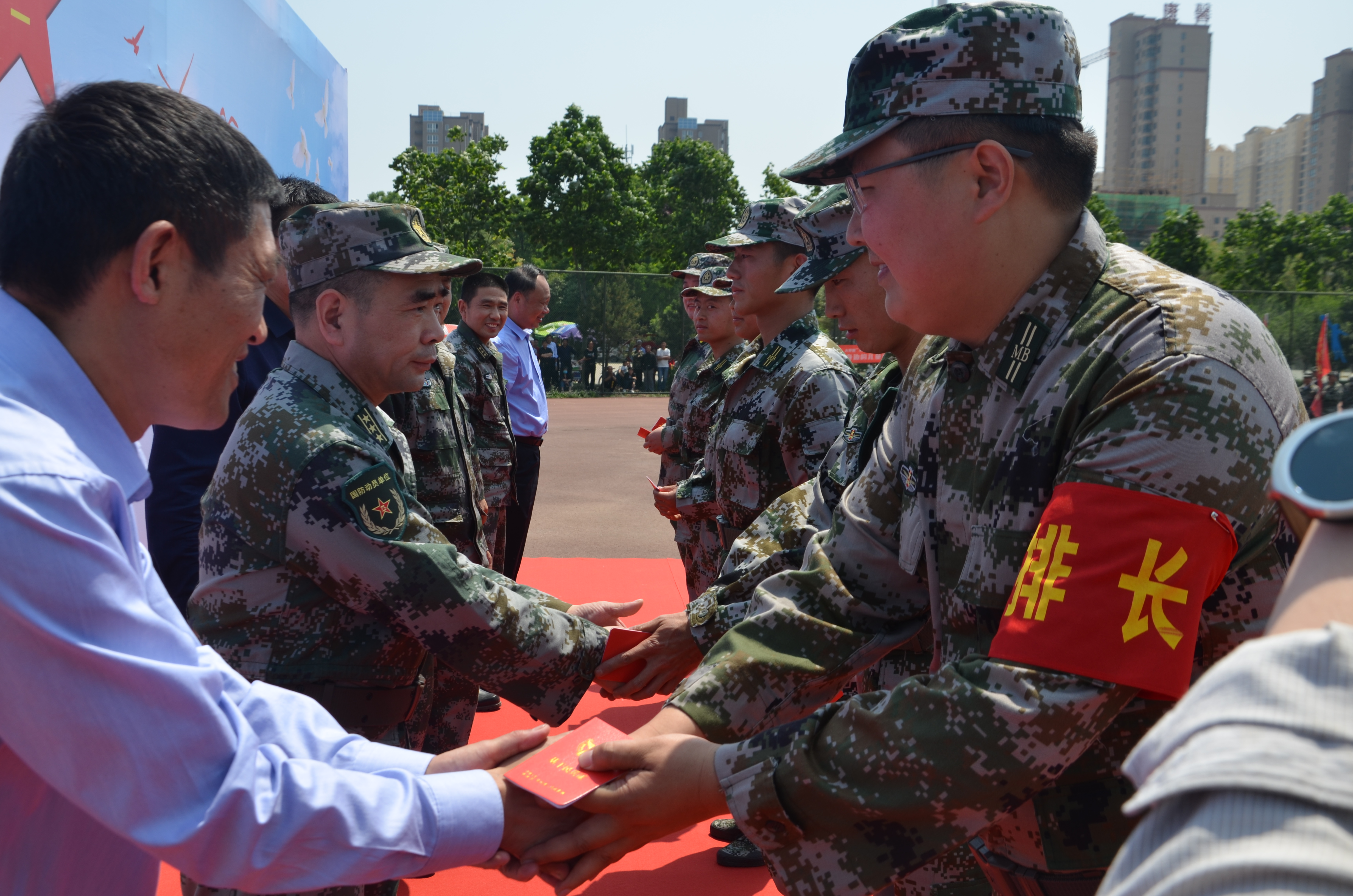 大會在雄壯的《解放軍軍歌》中拉開了序幕??h委常委、人武部政委曹新旺宣布基干民兵排以上干部任職命令,縣委常委、常務(wù)副縣長郝四春代表縣委、縣政府、縣人武部為基干民兵分隊授旗,綜合應(yīng)急連指導(dǎo)員、縣人武部政工科長李紅藝帶領(lǐng)全體民兵面對國旗宣讀民兵誓詞。在場領(lǐng)導(dǎo)向民兵代表發(fā)放了基干民兵證和入隊通知書,民兵代表和教練員代表分別進(jìn)行了表態(tài)發(fā)言。