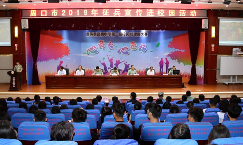 5月27日上午,周口市征兵宣傳進校園在鹿邑縣高中隆重舉行。市征兵辦公室副主任、周口軍分區(qū)動員處處長李保祥,鹿邑縣委常委、縣人武部政委杜寶森,縣人武部部長陳巍和鹿邑縣委宣傳部、教體局、縣高中負責人及師生800余人參加了此次活動。
