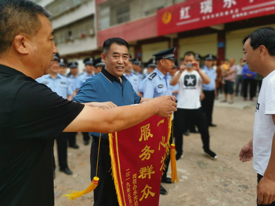 當日上午,一臺挖掘機停在規(guī)劃好的空地上,警戒線內是需要硬化的路面區(qū)域,困擾附近居民出行的問題終于要解決了。附近居民自發(fā)向公安民警和社區(qū)干部送上兩面寫著“創(chuàng)衛(wèi)先鋒 造福百姓”“一心為民 服務群眾”的錦旗,表達他們的感謝之情?!叭罕娛莿?chuàng)衛(wèi)的參與者也是受益者,等路面硬化后,希望大家和民警、社區(qū)干部一起將社區(qū)衛(wèi)生打掃好,保持好,為建成高標準衛(wèi)生小區(qū)共同努力?!睏罱苷f。