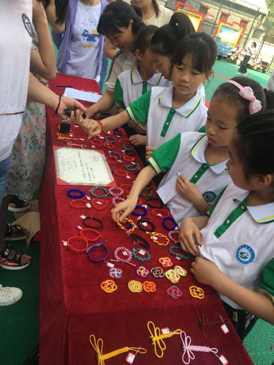 5月25日上午,沈丘縣中國(guó)結(jié)第七代傳承人李?;ㄗ哌M(jìn)槐店鎮(zhèn)回民小學(xué),和學(xué)?!爸袊?guó)結(jié)”手工編織興趣班的20名學(xué)生舉行“愛心義賣,情暖校園”主題活動(dòng)。不到半小時(shí),100多件作品被搶購(gòu)一空還預(yù)定了很多。據(jù)悉,這次義賣共得到1200余元,將全部捐給“槐店鎮(zhèn)中心學(xué)校教育基金”,用來(lái)資助該鎮(zhèn)經(jīng)濟(jì)困難師生、獎(jiǎng)勵(lì)優(yōu)秀教師和學(xué)生、資助教育教研等重大活動(dòng)項(xiàng)目。