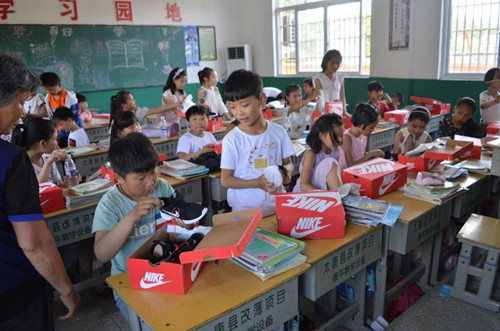 說干就干,回到公司,他便安排專人負責,為母校的260多名師生每人購買了一雙出廠價200余元,總價值5萬余元而市場價則需10多萬元的國際知名品牌—耐克牌運動鞋,為學校落實陽光體育運動,強健孩子的體魄打下了良好的物質(zhì)基礎(chǔ),受到當?shù)馗扇旱囊恢潞迷u。