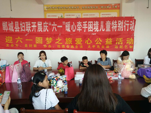 5月30日上午,鄲城縣婦聯(lián)組織縣中醫(yī)院醫(yī)務(wù)志愿者和優(yōu)雅會(huì)逸生活的愛(ài)心人士,到縣兒童福利院看望慰問(wèn)孤兒,為營(yíng)造全社會(huì)共同關(guān)心關(guān)愛(ài)兒童,尤其是更加關(guān)愛(ài)特殊兒童的良好氛圍。