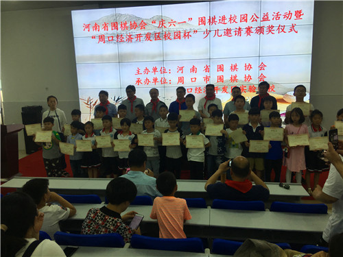 6月1日,省圍棋協(xié)會在周口經(jīng)濟開發(fā)區(qū)實驗學(xué)校舉行慶“六一”圍棋進校園公益活動暨校園杯圍棋邀請賽。省圍棋協(xié)會副會長郭寶林、秘書長袁曦、副秘書長張新華,市工信委主任姚衛(wèi)田,周口圍棋協(xié)會有關(guān)領(lǐng)導(dǎo)參加。