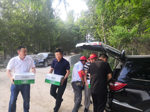 “我始終認(rèn)為,為家鄉(xiāng)建設(shè)出一份力,是我義不容辭的義務(wù)?!北本┦腥f城泰安建設(shè)有限公司白國正董事長對鄉(xiāng)親們說。6月1日,白國正為堅守在禁燒一線的工作人員,送來了恒大冰泉礦泉水100件。