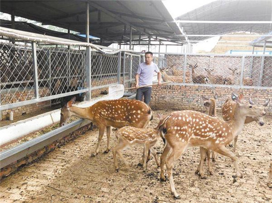 在沈丘縣卞路口鄉(xiāng)趙莊村,返鄉(xiāng)大學(xué)生趙沛陽(yáng)從2018年開始學(xué)習(xí)梅花鹿飼養(yǎng)技術(shù),并投資100多萬(wàn)元建起養(yǎng)殖場(chǎng),發(fā)展特色養(yǎng)殖業(yè),收益可觀。在養(yǎng)鹿過(guò)程中,趙沛陽(yáng)優(yōu)先聘用周邊貧困群眾到養(yǎng)殖場(chǎng)工作,不僅給他們發(fā)工資,還教給他們養(yǎng)殖技術(shù),幫助貧困群眾脫貧致富。記者 韋偉 攝