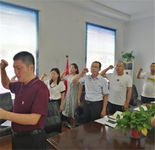 活動還對聞榮玲、王偉兩名預(yù)備黨員轉(zhuǎn)為正式黨員進(jìn)行了審議、討論、表決;全體黨員面對黨旗,重溫了入黨誓詞;全體黨員還進(jìn)行了慶祝建黨98周年知識測試。