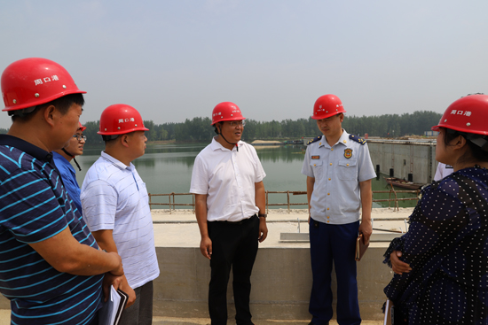 6月27日上午,周口港區(qū)黨委委員杜廣賢、管委會副主任劉明瀟到周口中心港碼頭排查安全生產(chǎn)工作。