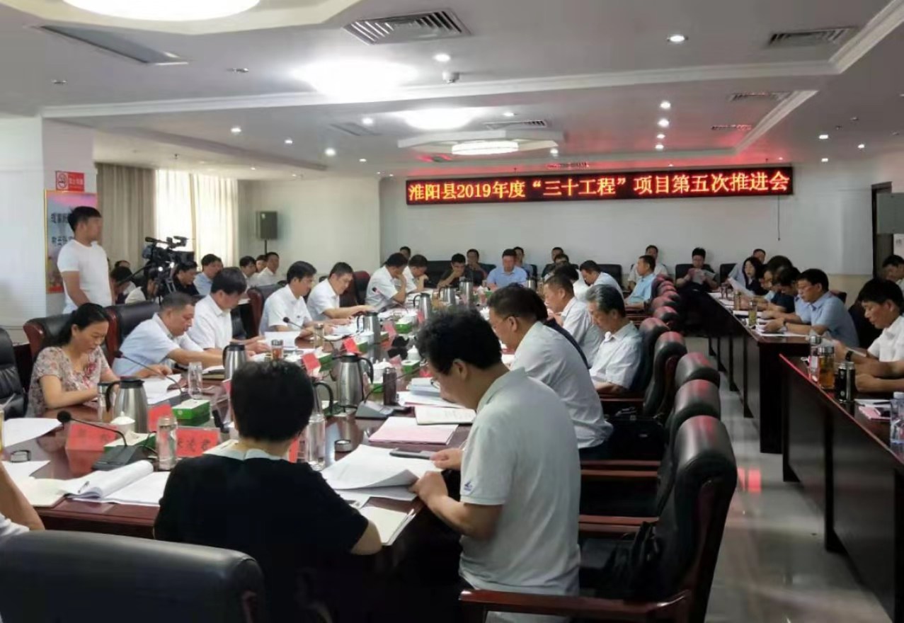 7月1日上午,淮陽縣召開2019年“三十工程”項目第五次推進會議。馬明超、王毅、蘇中林、馬自成、謝留定、董鴻、劉淑杰、李祥生、劉大明、劉元濤、鄒松等四個班子領導和項目指揮部副指揮長及相關單位負責人參加會議。會議回顧總結(jié)上半年的項目建設工作,安排部署下一階段的重點項目建設工作。