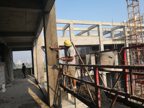 當(dāng)日上午,記者在施工現(xiàn)場看到,雖然天氣炎熱,但是每項工程都進(jìn)展有序,部分已經(jīng)封頂?shù)臉欠空谶M(jìn)行后續(xù)施工,未封頂?shù)臉欠恳舱诰o張施工中,整個施工現(xiàn)場電鉆聲、切割聲此起彼伏,一派熱烈的施工景象。