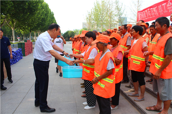 當(dāng)日上午,該縣總工會主席王超一行帶著綠豆、白糖、礦泉水、清涼包等價值10多萬元的防暑降溫用品,先后到環(huán)衛(wèi)大隊、快遞小哥、洺河生態(tài)水系建設(shè)一線、交警大隊、道路貨物運輸行業(yè)等單位看望慰問一線職工,把黨和政府以及工會組織的關(guān)愛送到了職工的心坎上。