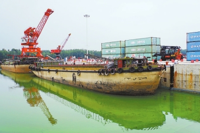 7月20日,周口中心港一派繁忙景象。該港口是我省規(guī)模最大、靠泊能力最強(qiáng)的內(nèi)河港口。隨著公、鐵、水、空“四位一體”立體綜合交通格局的逐步形成,周口中心港將成為豫貨出???、連接長(zhǎng)三角經(jīng)濟(jì)圈的“橋頭堡”,也將成為中原地區(qū)深度融入“一帶一路”建設(shè)、通江達(dá)海的重要節(jié)點(diǎn)。河南日?qǐng)?bào)記者 陳更生 王錚 攝