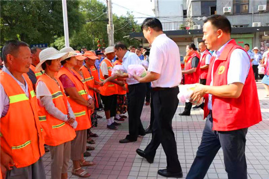 8月8日,扶溝縣政協(xié)主席張建中帶領(lǐng)縣政協(xié)委員和政協(xié)機(jī)關(guān)志愿者到縣城桐丘路視察文明城市創(chuàng)建工作,并看望慰問環(huán)衛(wèi)工人和城管工作人員??h政協(xié)常委田孟偉代表達(dá)理家居有限公司捐贈(zèng)價(jià)值2萬余元防暑降溫用品,助力扶溝縣省級(jí)文明城市創(chuàng)建工作。