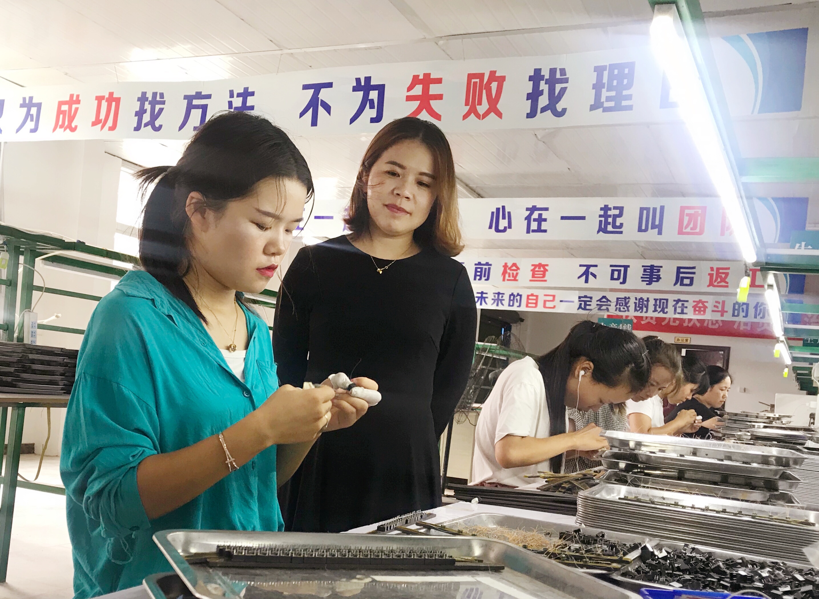 河南雙晨電子科技有限公司去年落戶西華縣大王莊鄉(xiāng)劉老家村后,生產(chǎn)線安裝繞線機(jī)、點(diǎn)焊機(jī)、包裝機(jī)等近50臺(tái),產(chǎn)品廣泛用于液晶顯示屏、計(jì)算機(jī)、數(shù)碼相機(jī)、醫(yī)療設(shè)備、汽車等,目前已安置群眾就業(yè)50余人,其中貧困戶近20人,人月均收入3000多元,讓村民在家門口實(shí)現(xiàn)就業(yè)增收。圖為該公司總經(jīng)理在生產(chǎn)車間了解工人收入和家庭生活情況。