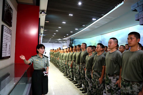 宣誓完畢后,預(yù)定新兵們依次進入場館,在講解員的引導(dǎo)下,一幅幅真實的歷史畫卷、一篇篇詳實的文獻記載,一件件珍貴的歷史文物生動再現(xiàn)了革命先烈為理想而奮斗的光輝歷程。感受將軍“矢志不渝、舍身報國”的大無畏革命精神,讓預(yù)定新兵的心靈受到很大的震撼,進一步堅定了從軍報國的遠大理想。