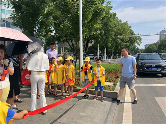 “叔叔,這個框子不能擺在路邊哦,垃圾也要倒在垃圾桶里,我給您發(fā)一個文明倡議書,您看一下”,“奶奶,不能橫穿馬路喲,紅燈停,綠燈行,要注意交通安全喲”......7月20日,35名小小志愿者來到古城社區(qū),參加古城社區(qū)小太陽志愿服務(wù)隊創(chuàng)文主題活動。一個個身穿黃色馬甲的小小身影成為馬路上一道靚麗的風(fēng)景線。