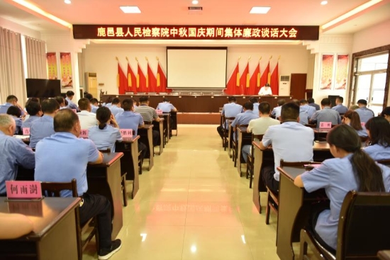 中秋節(jié)、國(guó)慶節(jié)即將來(lái)臨,為加強(qiáng)節(jié)日期間黨風(fēng)廉政建設(shè),以實(shí)際行動(dòng)展現(xiàn)檢察隊(duì)伍遵規(guī)守紀(jì)的過(guò)硬作風(fēng),9月 9日,鹿邑縣人民檢察院召開(kāi)中秋、國(guó)慶“雙節(jié)”期間集體廉政談話大會(huì)。