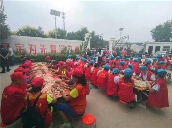 與此同時,在演出現(xiàn)場附近的村委大院內(nèi),由周口市慈孝文化促進會、北斗達教育集團等組成的200多名志愿團隊正忙得不亦樂乎,調(diào)餡、包餃子、下鍋、端盤,兩個多小時內(nèi),他們精心包出20000多個愛心水餃。11時30分,餃子宴正式開始,老人們一邊吃著水餃一邊觀看者演出,喜笑顏開,呈現(xiàn)出一片相親相敬的溫馨畫面。
