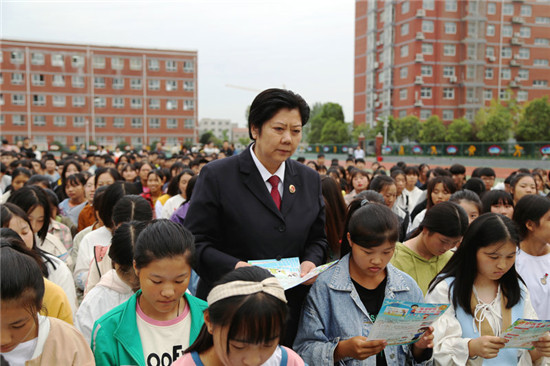 活動現(xiàn)場,檢察官們向?qū)W生們發(fā)放了精心制作的《未成年人保護宣傳冊》以及《給全縣未成年人家長們的一封信》宣傳頁,傳遞與青少年關(guān)系密切的法律知識,引導(dǎo)未成年人崇德尚法、注重自我保護。宣講員張飛霞為學(xué)生們講述了如何拒絕不安全觸摸、小心陌生人等知識;宣講員丁俊豪通過幽默精彩的動畫故事向?qū)W生們簡述了校園欺凌的危害,以及面對校園欺凌時如何勇敢的說不;宣講員劉艷艷告訴學(xué)生們在成長的過程中,要感恩父母、感恩老師,珍惜學(xué)習(xí)的時光,做一名無愧于父母、無愧于老師、無愧于自己的人。