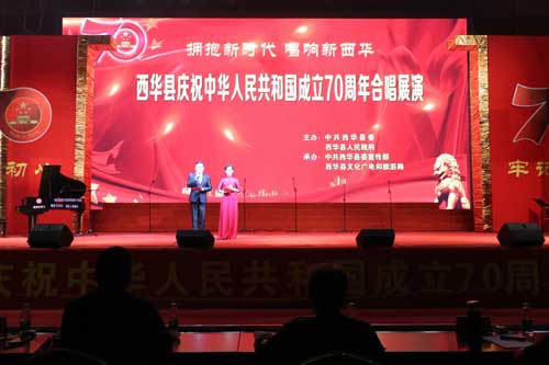 9月23日和24日晚,由西華縣委、縣政府主辦,縣委宣傳部、縣文化廣電和旅游局承辦的“擁抱新時代·唱響新西華”慶祝中華人民共和國成立70周年合唱展演預(yù)賽在該縣體育館舉行,林鴻嘉、程維崢、周曉燕、郭峰、陳秉生、楊鳳臣、張曉偉、趙增先等縣處級領(lǐng)導(dǎo)干部與來自全縣各屆的群眾共同觀看演出。