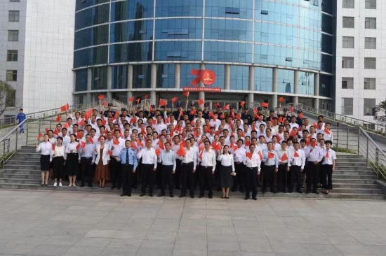 隨后,開發(fā)區(qū)黨委班子成員、開發(fā)區(qū)中層干部、普通黨員代表、教師黨員代表、消防隊員等200多人手執(zhí)國旗,齊聲合唱《我和我的祖國》《團(tuán)結(jié)就是力量》等歌曲,展示開發(fā)區(qū)人昂揚向上的精神風(fēng)貌,熱烈慶祝新中國成立70周年。