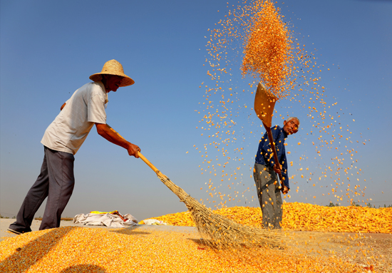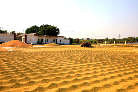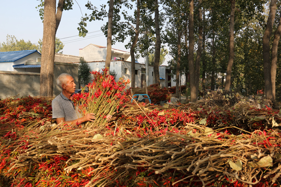 此時,正值西華縣秋收時節(jié),玉米、花生、大豆、谷子、辣椒、柿子、大棗、甘蔗等農作物應季而熟。滿眼的金色、紅色與田間地頭緊張運作的農業(yè)機械和農民忙碌的身影構成一幅美不勝收的秋收畫卷。