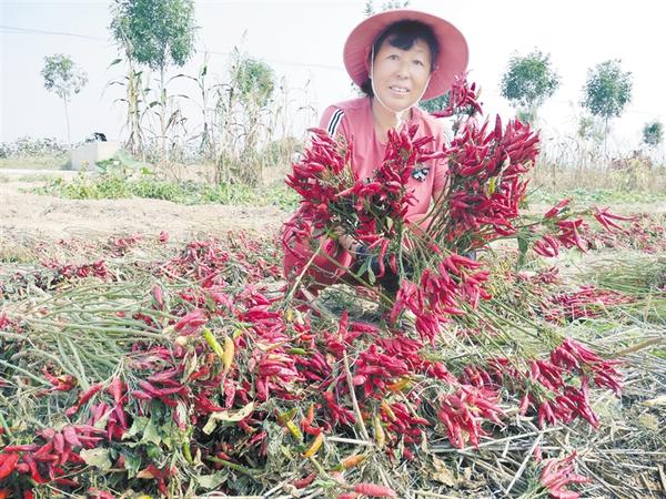 近日,扶溝縣汴崗鎮(zhèn)的辣椒種植戶們迎來豐收。汴崗鎮(zhèn)積極引導(dǎo)農(nóng)民調(diào)整種植結(jié)構(gòu),大力發(fā)展“訂單式”辣椒產(chǎn)業(yè),成為遠(yuǎn)近聞名的辣椒種植專業(yè)鎮(zhèn),推動(dòng)了脫貧攻堅(jiān)工作和鄉(xiāng)村振興戰(zhàn)略實(shí)施。圖為該鎮(zhèn)于營行政村村民李素英向記者展示豐收的辣椒。記者 謝永靜 攝