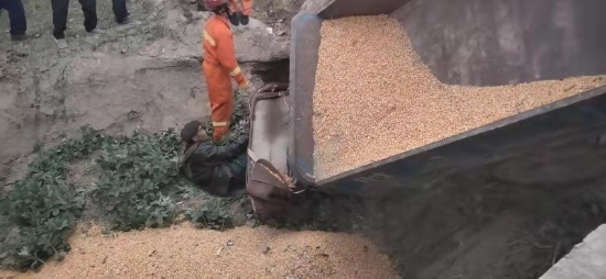 接警后,鄲城消防大隊(duì)立即出動(dòng)3輛消防車15名指戰(zhàn)員前往處置。經(jīng)偵查發(fā)現(xiàn),側(cè)翻車輛是一輛農(nóng)用三輪車,車上拉有約2噸散裝玉米?,F(xiàn)場玉米灑落一地,駕駛員約六十歲,左腿被農(nóng)用三輪車前輪壓住,無法脫身,加之即將天黑,當(dāng)時(shí)天氣較冷,如不及時(shí)處置,后果不堪設(shè)想。