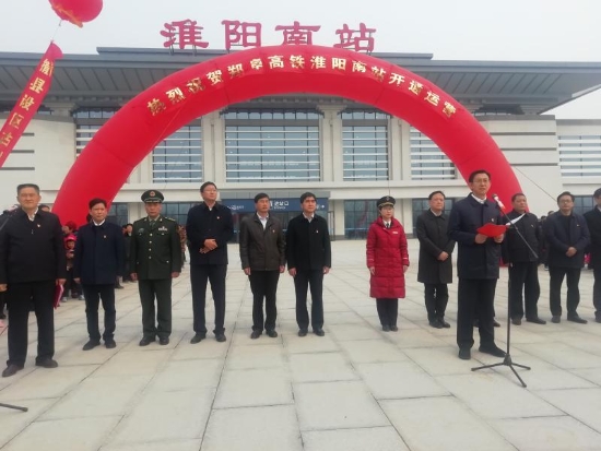 當(dāng)日上午,暖陽高照,淮陽南站站前廣場人頭攢動。“高鐵來了,激動人心”。為祝賀高鐵開通這一大喜事,淮陽縣舉行了簡樸的鄭阜高鐵淮陽南站正式運行儀式,縣四個班子領(lǐng)導(dǎo)和有關(guān)部門負責(zé)同志及附近廣大群眾參加了儀式。