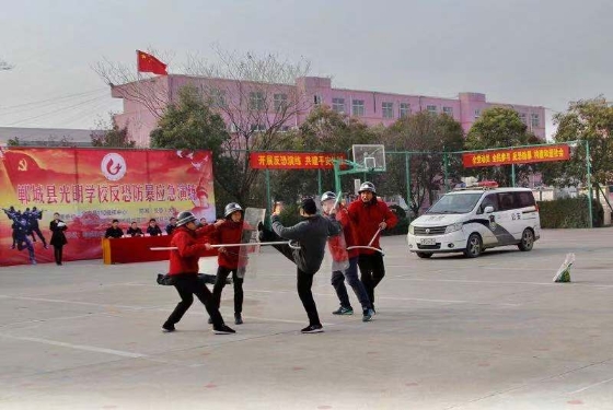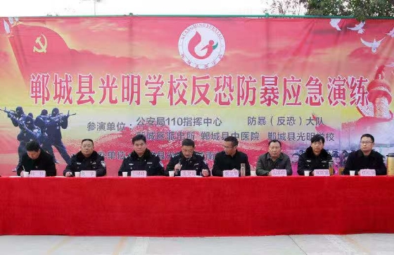 為切實(shí)做好“平安校園”建設(shè)工作,進(jìn)一步增強(qiáng)全縣師生對突發(fā)暴恐事件的防范意識(shí),提升在面對暴恐事件時(shí)自護(hù)自救及有效逃生避險(xiǎn)能力,最大限度減少因突發(fā)暴恐事件對師生造成的傷害,提高學(xué)校安全保衛(wèi)應(yīng)急處置和管理水平,12月20日上午,鄲城縣反恐辦組織相關(guān)單位在光明中學(xué)開展防暴恐知識(shí)培訓(xùn)和演練。