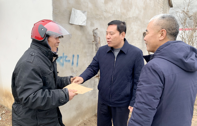 在牛莊和梁莊行政村,趙紅建在寧平鎮(zhèn)鎮(zhèn)長(zhǎng)王樹勤的陪同下,看望慰問(wèn)了困難群眾、困難老黨員,送去了慰問(wèn)金,向他們致以新春的問(wèn)候和美好的祝福。