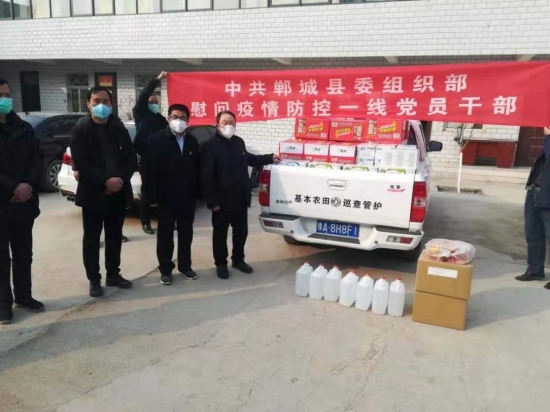 為認(rèn)真貫徹落實(shí)習(xí)近平總書記重要指示精神和中央、省委、市委組織部門決策部署,充分發(fā)揮專項(xiàng)黨費(fèi)在疫情防控工作中傳遞組織溫暖、解決實(shí)際困難、凝聚黨心民心的重要作用,2月5日,鄲城縣委常委、組織部長侯磊帶領(lǐng)各位副部長分頭行動(dòng),迅速將專項(xiàng)黨費(fèi)購買的酒精、消毒液、牛奶、方便面等有關(guān)物資援贈(zèng)到一線基層黨組織,并與各鄉(xiāng)鎮(zhèn)(辦事處、 高新區(qū))黨(工)委負(fù)責(zé)人進(jìn)行了交接,切實(shí)將組織的關(guān)懷溫暖傳遞到戰(zhàn)斗在疫情防控第一線的基層黨組織和廣大黨員干部,全力幫助支持基層黨組織開展疫情防控工作。