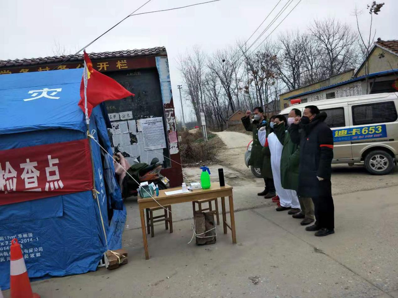 “我莊嚴(yán)宣誓,為維護(hù)人民群眾身體健康及生命安全,全力做好新型冠狀病毒感染的肺炎疫情防控工作,誓死捍衛(wèi)新時(shí)代黨員干部的使命與擔(dān)當(dāng)。”這是付集鎮(zhèn)黨委副書(shū)記曹懷永帶領(lǐng)張埝卡點(diǎn)宣誓的場(chǎng)景。2月5日,這段感人而又讓人充滿(mǎn)信心的宣誓聲,在付集大地相繼響起,張埝卡點(diǎn)一線(xiàn)臨時(shí)黨支部正式成立。