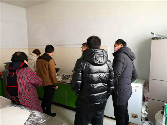 疫情越來(lái)越嚴(yán)重,鄉(xiāng)干部全部下沉到行政村,搞宣傳、設(shè)卡點(diǎn)、控人流。因?yàn)樵绯鐾須w無(wú)暇在家就餐,加上飯店閉店,鄉(xiāng)政府伙房每餐都就餐人數(shù)從平時(shí)一二十人激增到五六十人。買不到饅頭吳素霞就親手蒸,買不到面條她就親手搟。特別是午間各村卡點(diǎn)人員交接時(shí)間不一,送走一波人又來(lái)一波。剛洗刷完餐具、清掃好廚房又該準(zhǔn)備下一餐了。