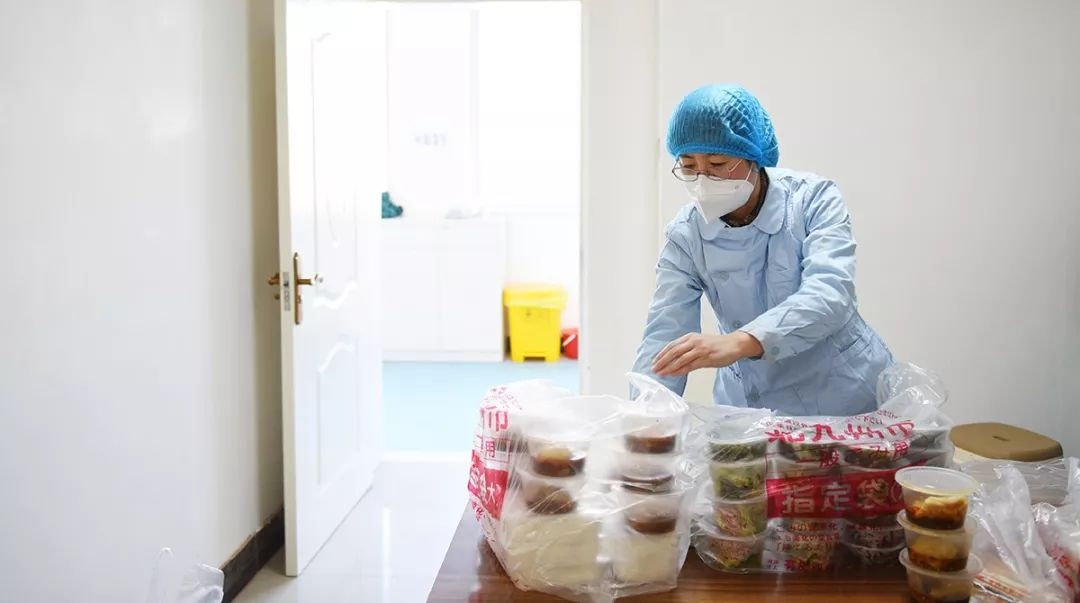 又到了打飯的時間,鄲城縣人民醫(yī)院新冠肺炎定點治療隔離病區(qū)護士長莊坤掰著手指一個一個向餐廳介紹病人的情況,用“了如指掌”來形容最恰當(dāng)不過。一邊說話,她一邊熟練地將幾筐飯菜分類打包,每一份都用食品袋包好,哪是確診病人的,哪是留觀病人的,每一份上面都寫上名字,再由護士分別送去。