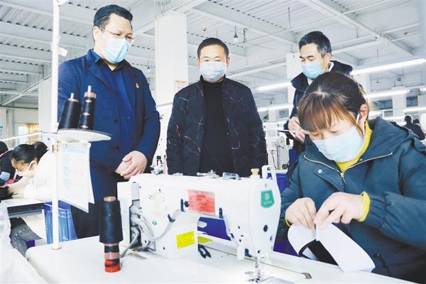 為保障抗擊疫情、企業(yè)復工復產協(xié)調推進,連日來,鄲城縣紀委監(jiān)委組織紀檢監(jiān)察干部深入復工復產企業(yè),了解企業(yè)復工審批、疫情防控措施落實等情況,督促有關部門及時解決企業(yè)面臨的難題,切實發(fā)揮監(jiān)督保障作用,全力護航企業(yè)復工復產。圖為昨日,該縣紀檢監(jiān)察干部在河南旭升帽業(yè)有限公司生產車間了解復工復產情況。