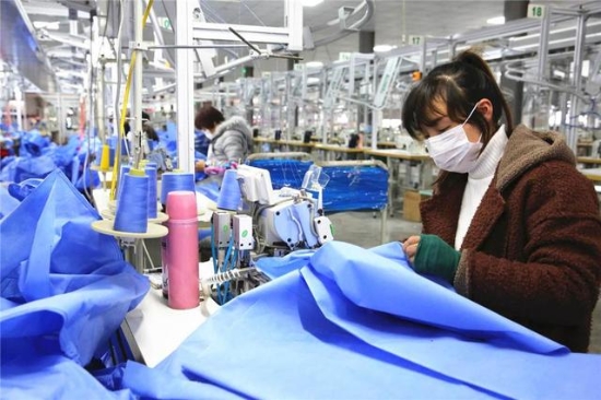 “進(jìn)廠員工每天都要佩戴口罩,車間里一天三次消毒,身體不適要及時向村委會匯報……”2月22日,安靜了多日的項(xiàng)城市三店鎮(zhèn)黃莊行政村“扶貧車間”里又熱鬧了起來,30多名附近村的村民熟練地操作著縫紉機(jī),隨著清脆的機(jī)杼聲,一捆捆丙綸布匹滑下生產(chǎn)線。