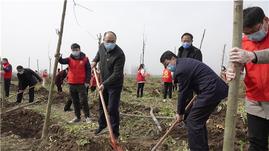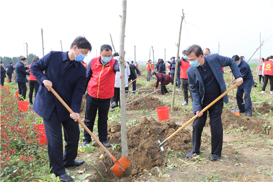 三埋土、兩踩實(shí)、一提根……三川大地春潮涌,植樹造林正當(dāng)時(shí)。3月12日上午,鄲城縣四個(gè)班子領(lǐng)導(dǎo)崔衛(wèi)國、李建軍、王偉等和廣大志愿者、群眾一起來到皇姑河畔義務(wù)植樹現(xiàn)場,揮鍬鏟土,栽植新綠,為鄲城大地再添一片綠意。