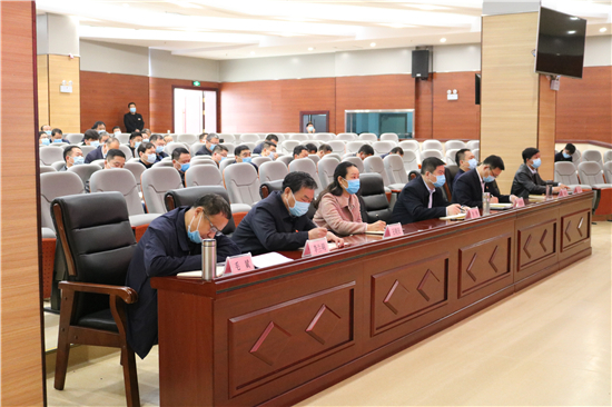3月20日,鹿邑縣組織收聽收看市委農(nóng)村工作(視頻)會(huì)議??h領(lǐng)導(dǎo)李剛、許四軍、王曉征、張國慶、李蘭明、張峰、毛斌等在縣文化中心分會(huì)場(chǎng)與縣直各部門、駐鹿各單位主要負(fù)責(zé)同志,各鄉(xiāng)鎮(zhèn)辦事處黨(工委)書記一起收聽收看。