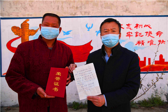 現(xiàn)在在疫情控制的情況下,他們?cè)诖迥蠞}河灣的干渠已經(jīng)著手建紅色抗疫教育基地,希望將村里的抗疫事跡、募捐情況、小分隊(duì)抗疫實(shí)況記錄下來,立下石碑,供村里后代繼承全社會(huì)眾志成城抗疫的紅色精神。