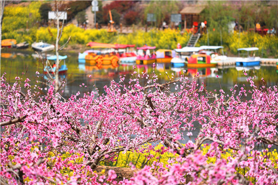 而在萬(wàn)畝桃花深處,賞花的人們也是醉不知?dú)w。大人孩子們神采飛揚(yáng),追逐賞花,探幽覓芳,玩得很嗨!還有一個(gè)時(shí)尚的人們,在桃花深處玩抖音、玩直播、拍視頻,與天下網(wǎng)友共賞花海之美。