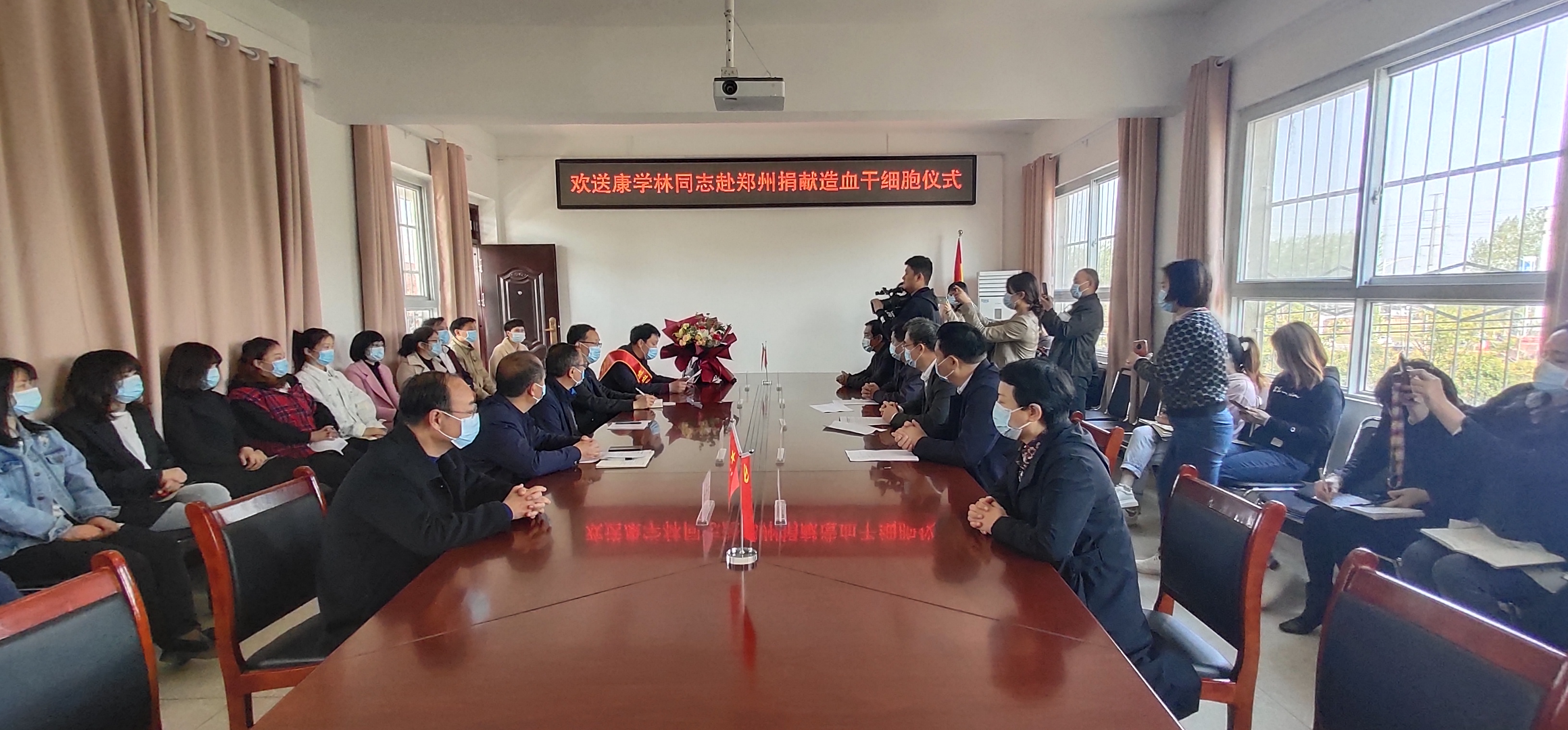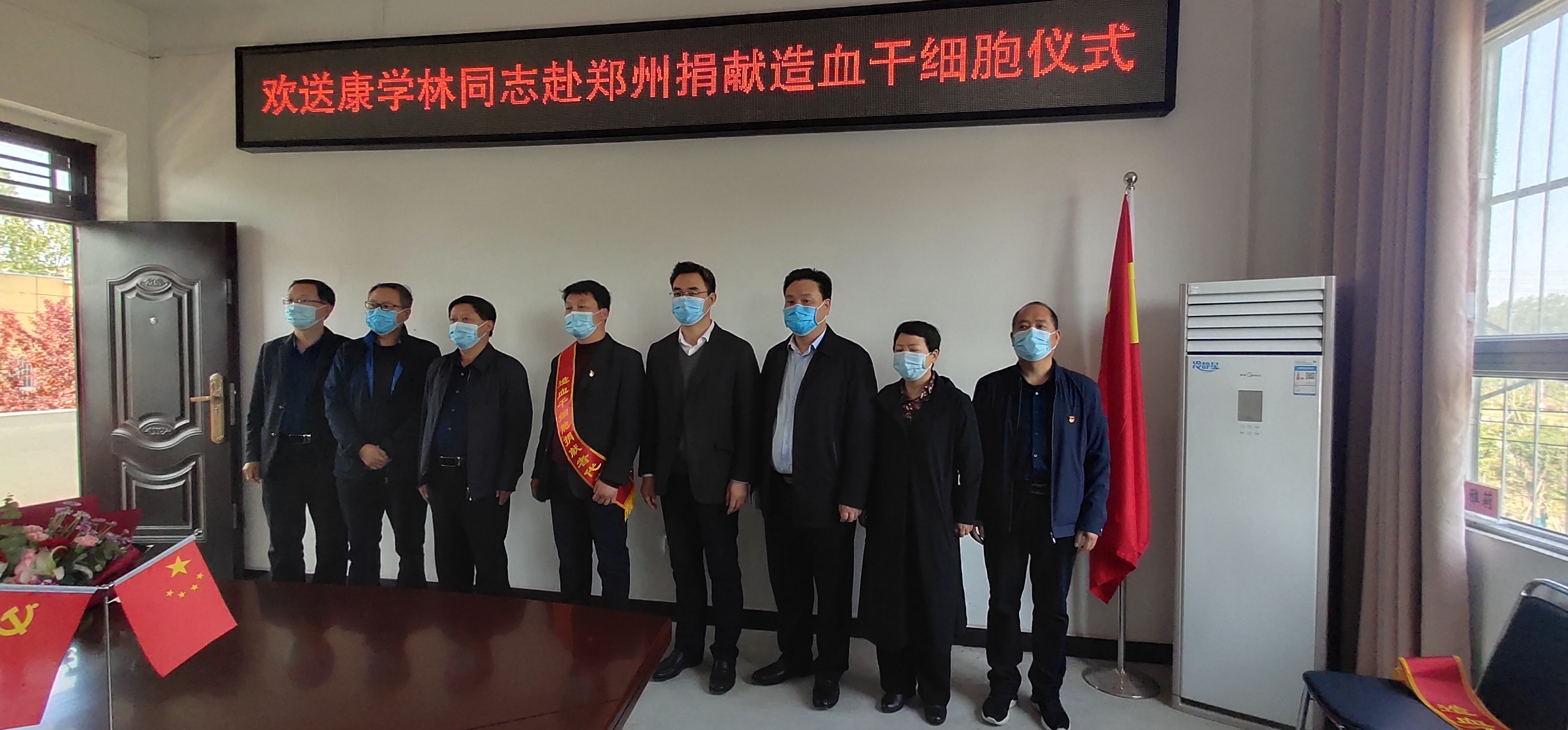 4月13日上午,在川匯區(qū)醫(yī)保局三樓會議室,我市為康學(xué)林赴鄭州捐獻造血干細胞舉行歡送儀式。副市長、市紅十字會會長秦勝軍出席。市政府副秘書長唐峰,市紅十字會常務(wù)副會長毛立營,市紅十字會秘書長高春,川匯區(qū)副區(qū)長、區(qū)紅十字會會長晉瑞英,川匯區(qū)衛(wèi)健委主任任艷陽,川匯區(qū)醫(yī)療保障局黨組書記王平立,川匯區(qū)醫(yī)療保障局局長欒春光,川匯區(qū)衛(wèi)健委副主任楊平云等參加。