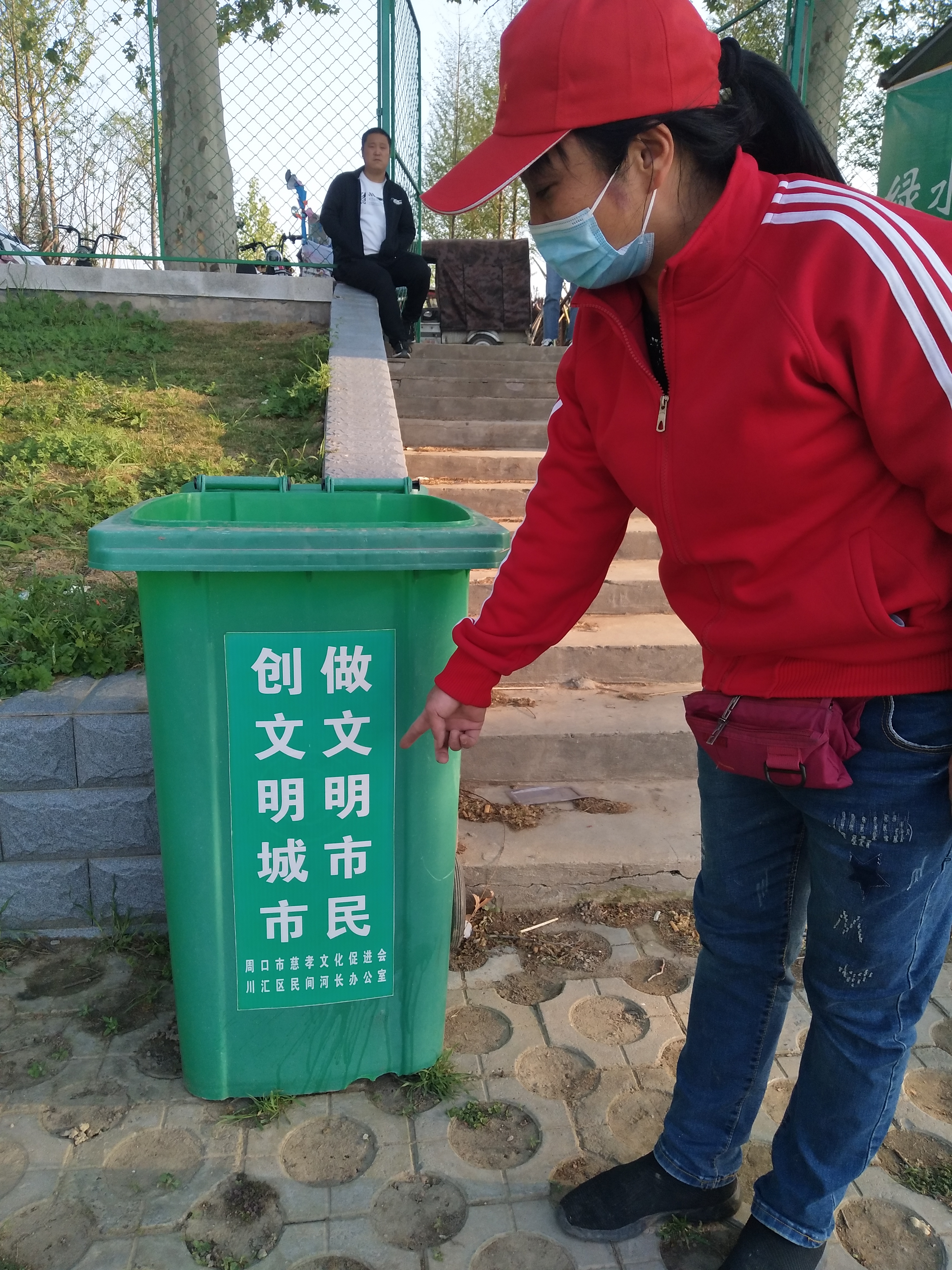 “有些人說(shuō)我們做的是無(wú)用功,清了下游清不了上游。你現(xiàn)在來(lái)看看咱們老周口人以前游泳的這一段,以前這塊兒盡是門板,爛木條,還有糞便,經(jīng)過(guò)我們長(zhǎng)期清理后,你看看現(xiàn)在?!笨看箝l最近的河灘上,水面如鏡,波光粼粼,幾名婦女在洗衣服。孫彩云指了指岸邊擺放的垃圾桶,上面寫著“周口市慈孝文化促進(jìn)會(huì)”、“川匯區(qū)民間河長(zhǎng)辦公室”的字樣?!斑@塊兒的垃圾桶是我們捐的,護(hù)河成果來(lái)之不易,我們要長(zhǎng)期維護(hù),影響帶動(dòng)更多市民自覺(jué)愛護(hù)母親河。我們相信總有一天沙潁河水會(huì)恢復(fù)到捧起來(lái)就能喝的狀態(tài)!”