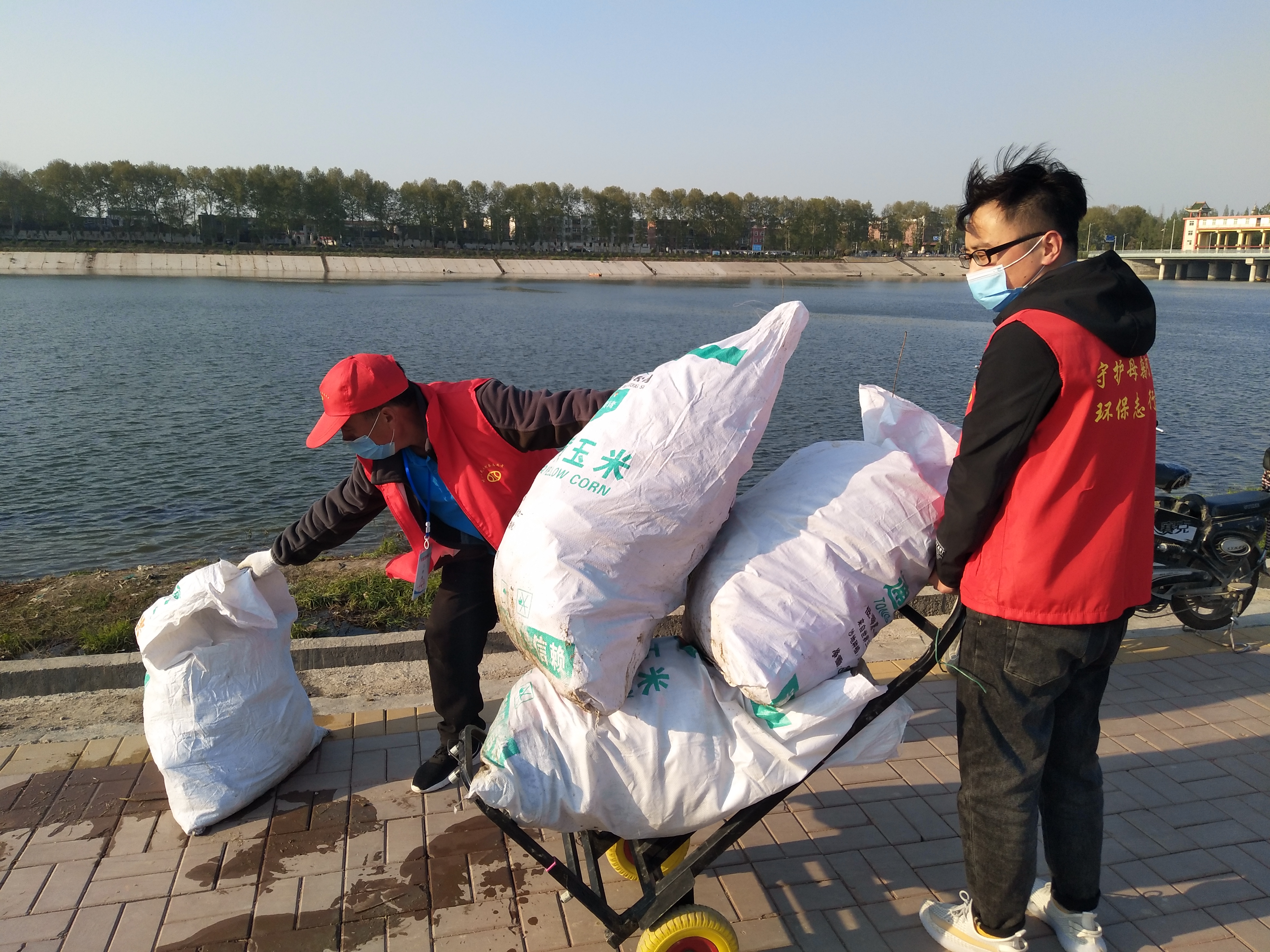 “哇!這回?fù)粕蟻?lái)得多,快撿呀!”前方不遠(yuǎn)處,一群志愿者歡呼著分揀剛撈上岸的一堆垃圾:塑料瓶,白色瓶蓋,玻璃瓶,包裝袋,化肥袋……志愿者們把他們逐一撿進(jìn)身后的垃圾筐,拉上河堤,裝進(jìn)白色大編織袋里。經(jīng)過(guò)兩個(gè)多小時(shí)的忙碌,十余大編織袋垃圾被裝車運(yùn)往垃圾站,慈孝文化促進(jìn)會(huì)第55次護(hù)河行動(dòng)順利結(jié)束。