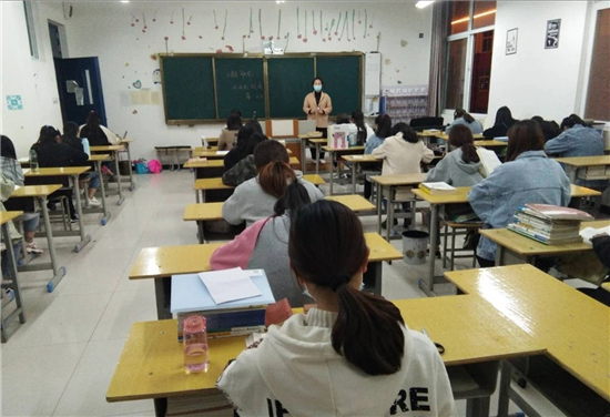 4月20日,學生報到。在校外廣場,有專業(yè)教師耐心引導,學生掃描健康碼進行登記,間隔一米以上有序排隊,電子測溫后進入消毒區(qū)域。進入校門前簽字確認,再次測溫,進行身體和物品消毒方可進入校園,學生找到自己專業(yè)班級登記確認后進入宿舍。就餐時單人單桌、同向按號進餐。 4月21日,開學首日上午播放省教育廳制作的疫情防控宣傳片。院長侯營坡安排部署近期教學和防疫工作。下午各專業(yè)繼續(xù)進行疫情防控知識普及、愛國主義教育、健康教育、心理疏導、食品安全教育等,由復學方案指定的教師分別授課。晚課時間召開主題班會,班主任具體負責,講解老師參加,采取師生互動,學生人人發(fā)言,讓學生進一步懂得防控疫情的重要性及防控措施方法。學生上課實行單人單桌,保持一定距離,課前測試體溫,拒絕發(fā)熱學生進入教室,做到教室通風,師生戴口罩,下課后不聚集,有序休息離開教室。教務處及各專業(yè)負責教學和疫情防控情況的督導。