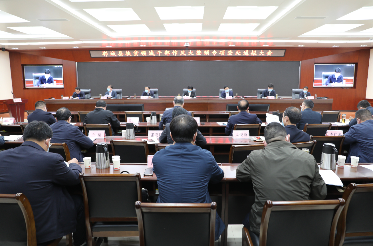 崔衛(wèi)國(guó)宣讀了《關(guān)于對(duì)縣農(nóng)發(fā)行等單位、樊建輝等同志脫貧攻堅(jiān)工作不力、作風(fēng)不實(shí)等問(wèn)題的督查通報(bào)》。胡友濤宣讀了《中共鄲城縣紀(jì)委關(guān)于扶貧領(lǐng)域腐敗和作風(fēng)問(wèn)題典型案例通報(bào)》。南豐鎮(zhèn)、寧平鎮(zhèn)、縣農(nóng)發(fā)行、水利局駐白馬鎮(zhèn)仵店行政村第一書(shū)記、吳臺(tái)鎮(zhèn)三王嶺行政村支部書(shū)記分別作檢討發(fā)言。與會(huì)全體同志還共同觀看了《錘煉過(guò)硬作風(fēng) 踐行初心使命 以優(yōu)異的成績(jī)奪取脫貧攻堅(jiān)收官之戰(zhàn)全面勝利》干部作風(fēng)督查紀(jì)實(shí)片。