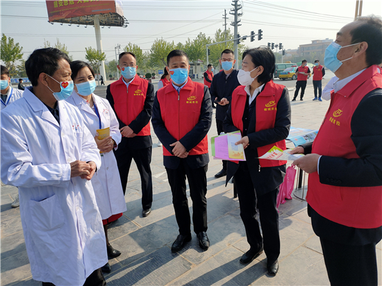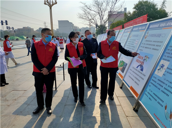 4月26日是我國(guó)第十三個(gè)“全國(guó)瘧疾日”。 今年的宣傳主題是“消除瘧疾控新冠,同防輸入再傳播”。4月24日,鄲城縣疾控中心在世紀(jì)廣場(chǎng)開展了瘧疾防治系列宣傳活動(dòng)??h人大常委會(huì)副主任張愛聯(lián)、縣衛(wèi)健委主任付登霄在縣疾控中心主任張吉志陪同下參觀了宣傳活動(dòng)。