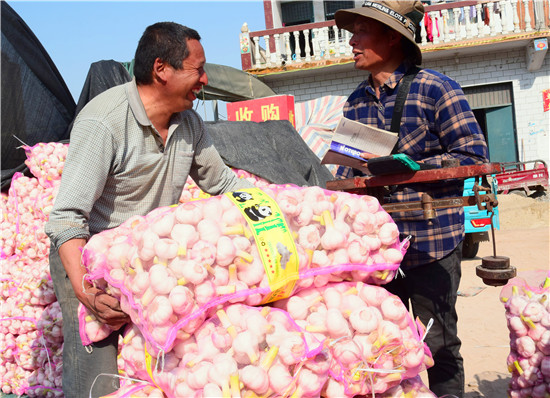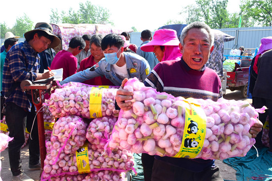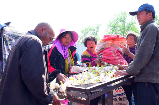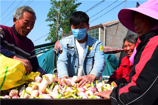 4月26日下午,記者在淮陽(yáng)縣王店鄉(xiāng)107國(guó)道沿線(xiàn)看到,各個(gè)大蒜的收購(gòu)點(diǎn)車(chē)來(lái)車(chē)往,蒜農(nóng)們拉著新蒜賣(mài)給小販們。盡管今年春季雨水較少,天旱土地墑情較差,但是上萬(wàn)畝大蒜,在蒜農(nóng)們施肥澆水管理下,長(zhǎng)勢(shì)不錯(cuò),每畝產(chǎn)量在3000斤到4000斤之間,迎來(lái)疫情下的大蒜豐收。