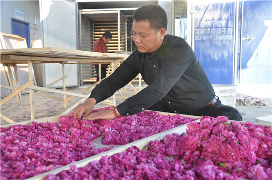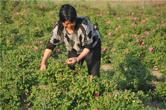 2015年,在昆明、鄭州等地從事花卉經(jīng)營(yíng)銷(xiāo)售十多年,積累了一定經(jīng)驗(yàn)和資本的劉軍停返鄉(xiāng)流轉(zhuǎn)土地種植藥用玫瑰400多畝,目前已到采摘期。這些玫瑰經(jīng)分揀、烘干等初加工后銷(xiāo)售到南方某醫(yī)藥公司進(jìn)行深加工,花農(nóng)每畝可收入7000元左右。