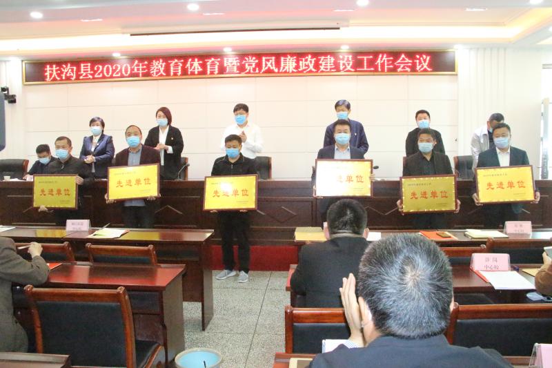 副局長嚴(yán)然宣讀了2019年教育體育工作先進(jìn)單位的表彰決定;副局長吳春輝傳達(dá)了扶溝縣教體局新冠肺炎疫情防控工作領(lǐng)導(dǎo)組關(guān)于加強疫情防控期間工作紀(jì)律的通知;各中心校長、局直學(xué)校校長依次遞交了目標(biāo)責(zé)任書和黨風(fēng)廉政建設(shè)承諾書。